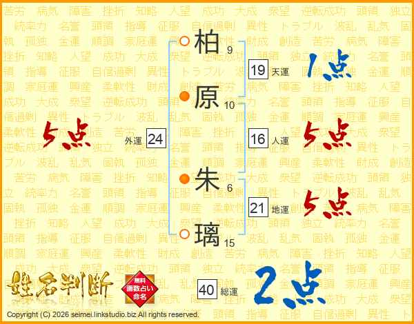 柏(9画)原(10画) 朱(6画)璃(15画)