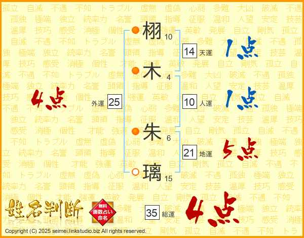 栩(10画)木(4画) 朱(6画)璃(15画)