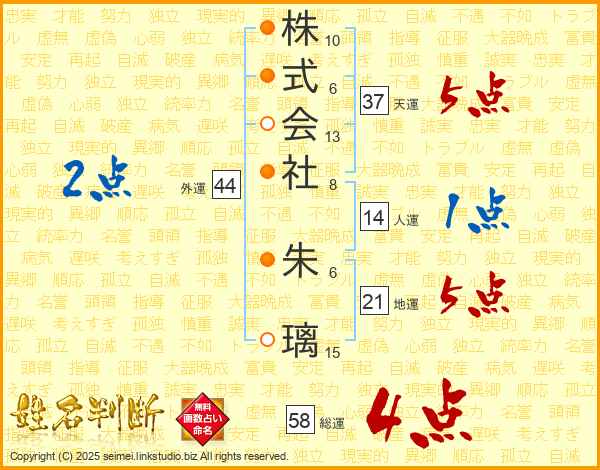 株式会社朱璃さんの総運は58画の4点!
