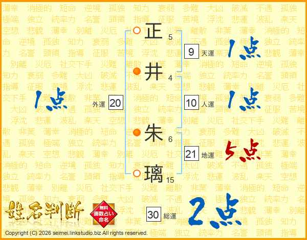 正井朱璃さんの総運は30画の2点!