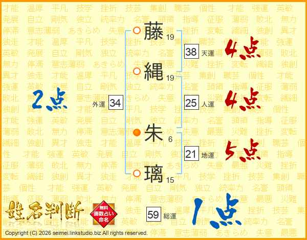 藤縄朱璃さんの総運は59画の1点!