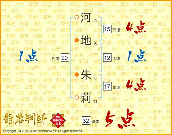 河地朱莉さんの天運は15画の4点!