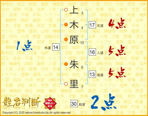 上(3画)木(4画)原(10画) 朱(6画)里(7画)