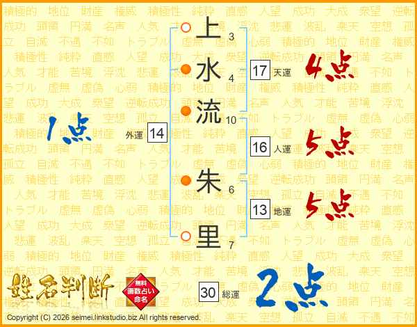 上水流朱里さんの天運は17画の4点!