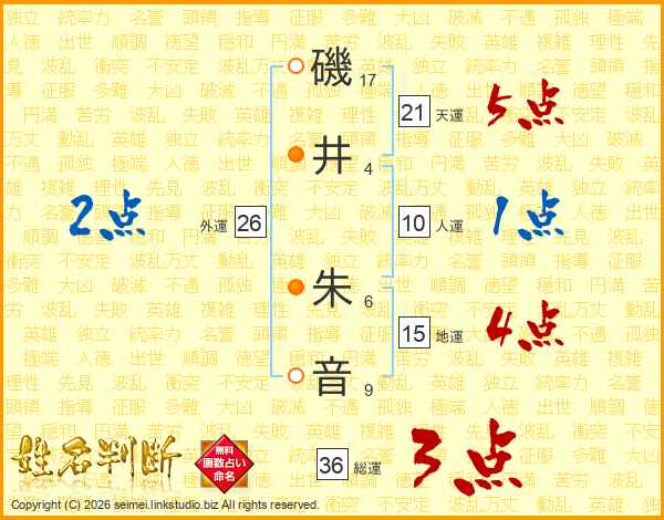 磯井朱音さんの天運は21画の5点!
