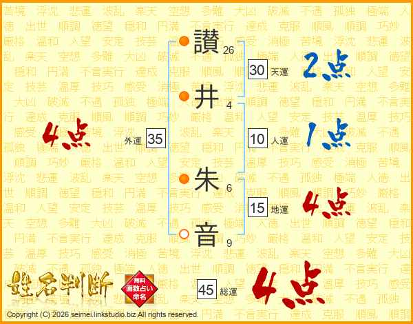 讃井朱音さんの総運は45画の4点!
