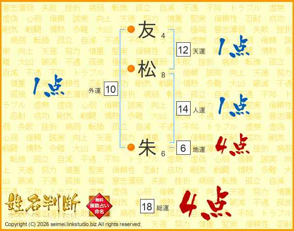 友松朱さんの総運は18画の4点!