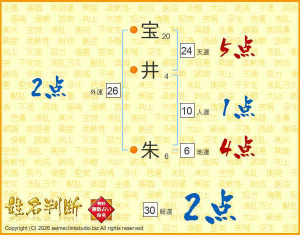 宝(20画)井(4画) 朱(6画)