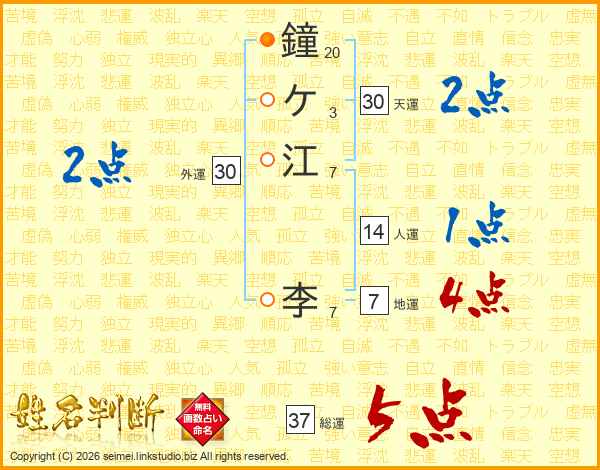 鐘(20画)ケ(3画)江(7画) 李(7画)