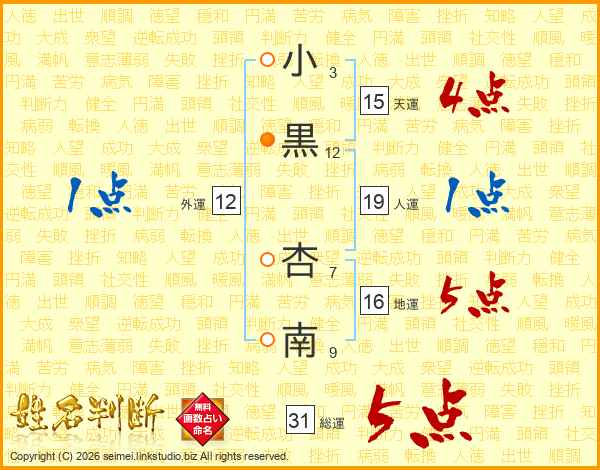 小黒杏南さんの総運は31画の5点!