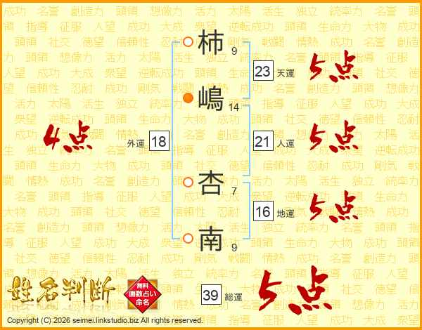 柿嶋杏南さんの総運は39画の5点!