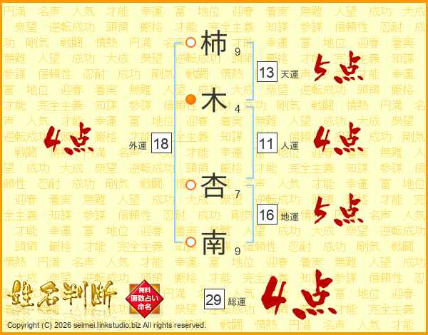 柿木杏南さんの総運は29画の4点!