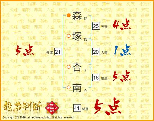 森塚杏南さんの外運は21画の5点!