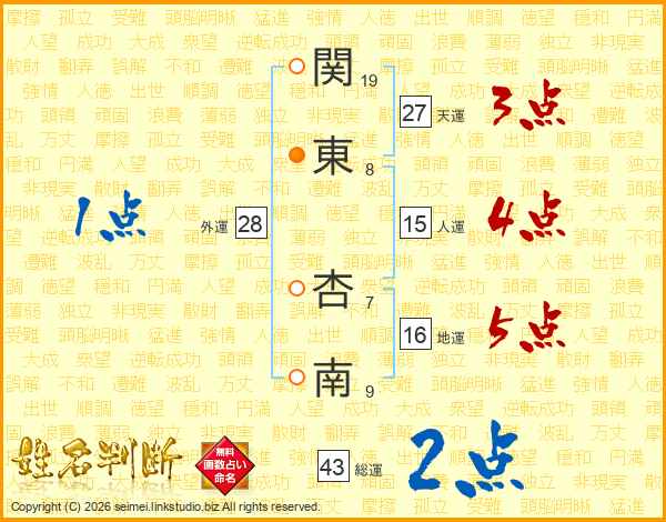 関東杏南さんの天運は27画の3点!