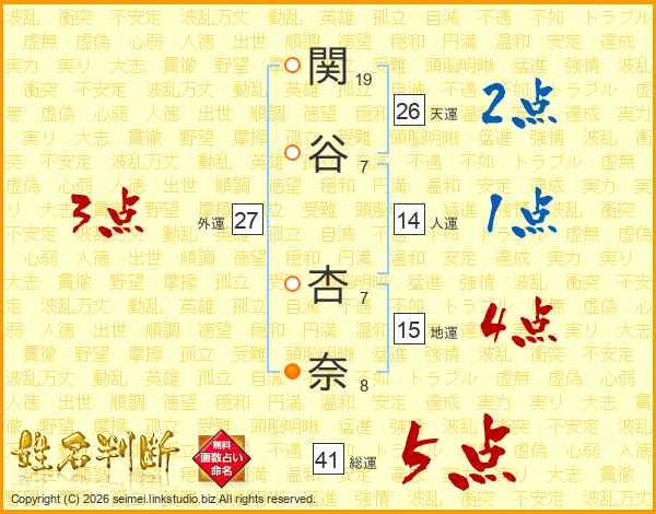 関谷杏奈さんの総運は41画の5点!