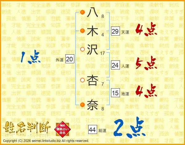 八木沢杏奈さんの天運は29画の4点!
