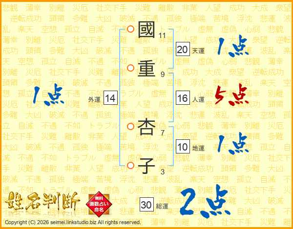 國重杏子さんの総運は30画の2点!