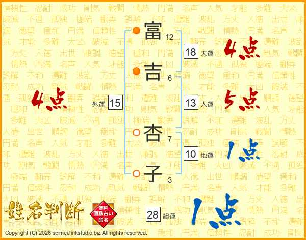 富吉杏子さんの天運は18画の4点!
