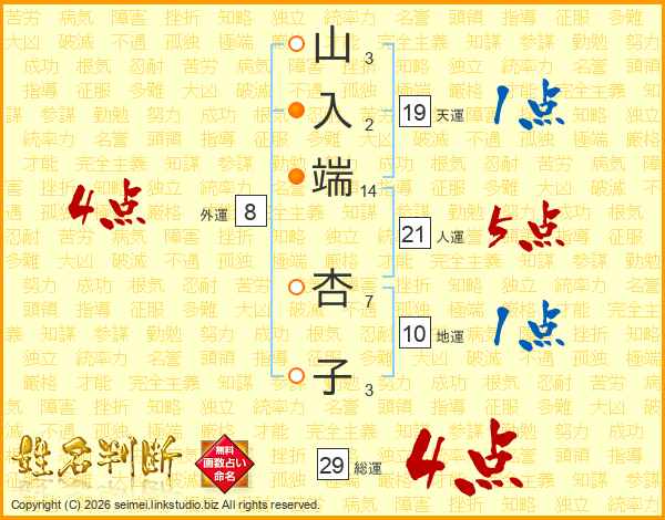 山入端杏子さんの総運は29画の4点!