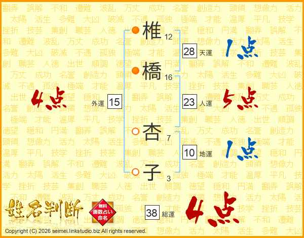 椎橋杏子さんの総運は38画の4点!