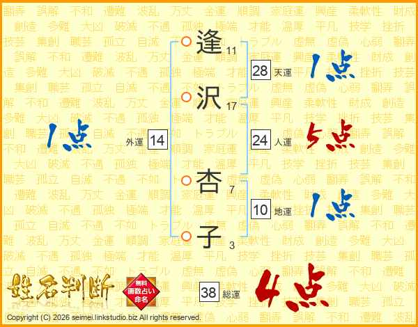 逢沢杏子さんの総運は38画の4点!