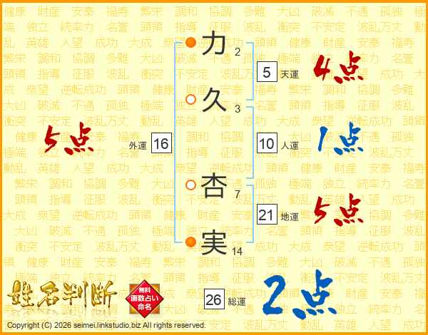 力久杏実さんの総運は26画の2点!
