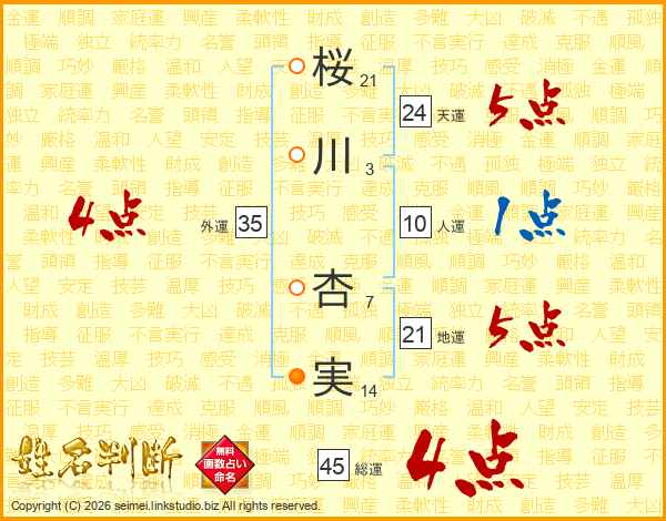 桜川杏実さんの総運は45画の4点!