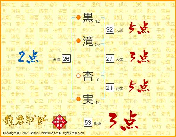 黒滝杏実さんの天運は32画の5点!