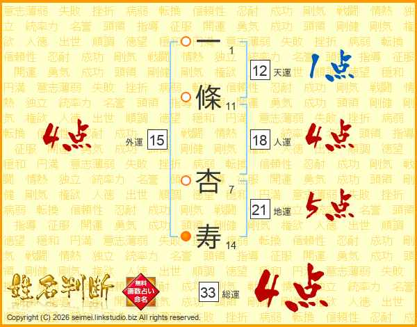 一條杏寿さんの総運は33画の4点!