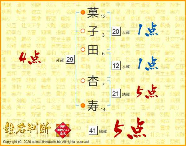菓子田杏寿さんの総運は41画の5点!