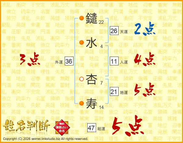 鑓(22画)水(4画) 杏(7画)寿(14画)