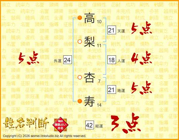 高梨杏寿さんの天運は21画の5点!
