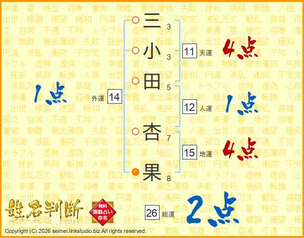 三(3画)小(3画)田(5画) 杏(7画)果(8画)