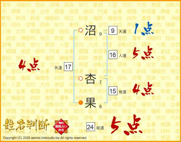 沼杏果さんの総運は24画の5点!