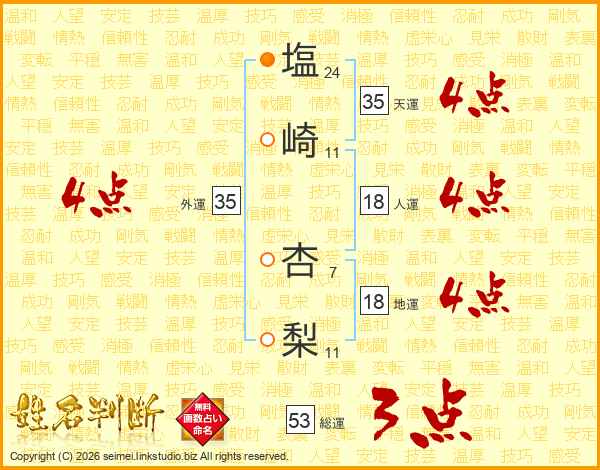 塩崎杏梨さんの外運は35画の4点!
