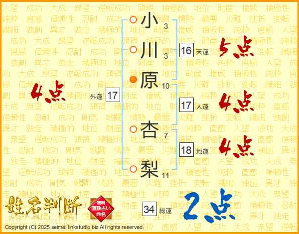 小(3画)川(3画)原(10画) 杏(7画)梨(11画)