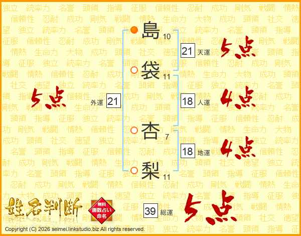 島袋杏梨さんの総運は39画の5点!