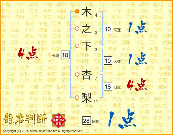 木之下杏梨さんの総運は28画の1点!