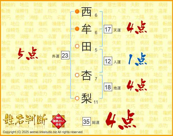 西牟田杏梨さんの天運は17画の4点!
