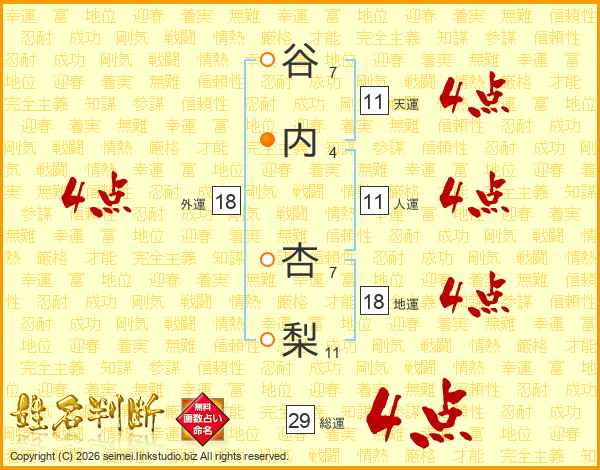 谷内杏梨さんの総運は29画の4点!