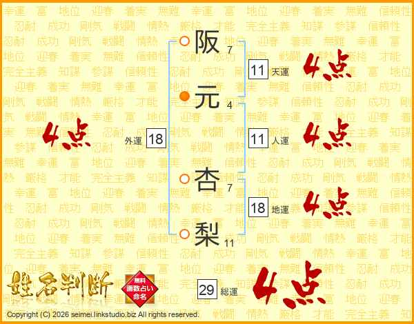 阪元杏梨さんの総運は29画の4点!