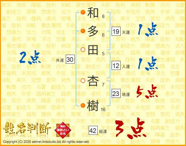 和(8画)多(6画)田(5画) 杏(7画)樹(16画)