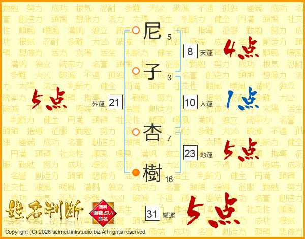 尼子杏樹さんの総運は31画の5点!