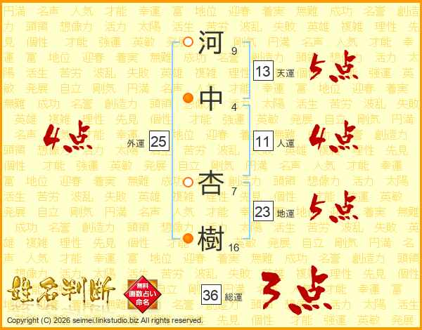 河中杏樹さんの総運は36画の3点!