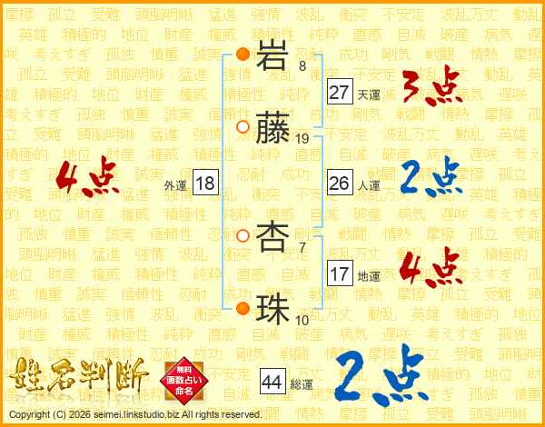 岩藤杏珠さんの総運は44画の2点!