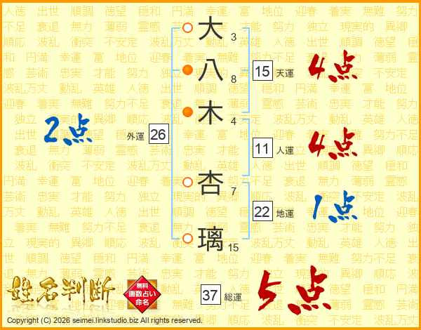 大八木杏璃さんの総運は37画の5点!