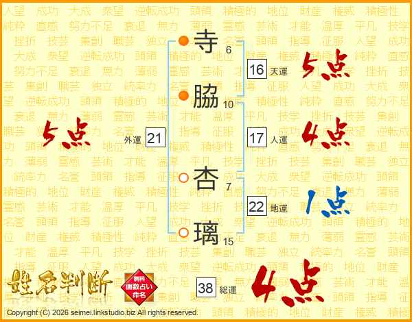 寺脇杏璃さんの総運は38画の4点!