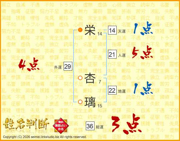栄杏璃さんの総運は36画の3点!