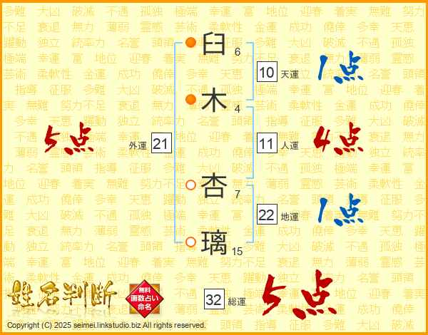 臼(6画)木(4画) 杏(7画)璃(15画)
