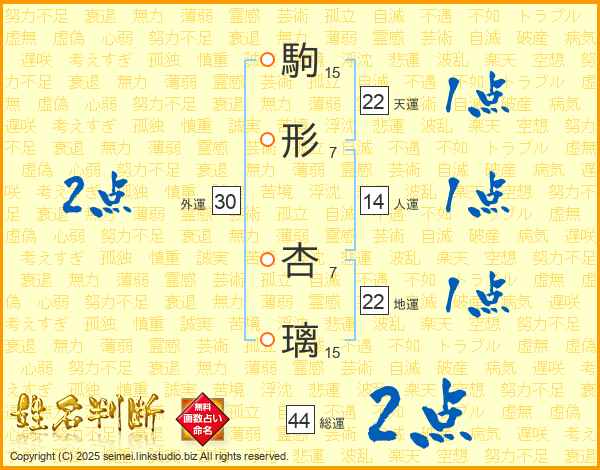駒(15画)形(7画) 杏(7画)璃(15画)